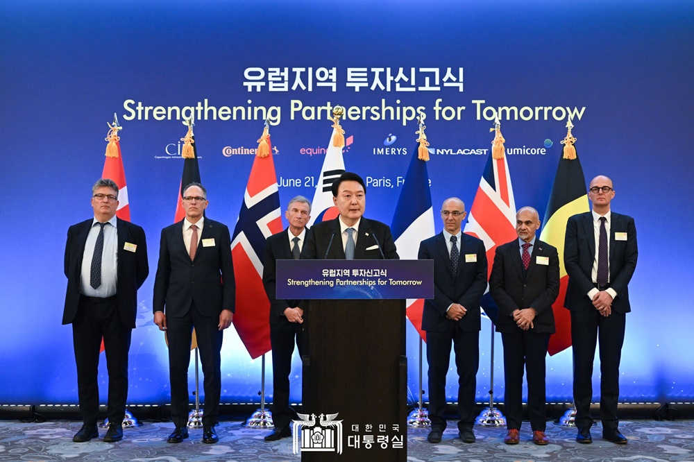 한국과 유럽은 보편적 가치를 공유하는 파트너로서 첨단 분야 상호 투자를 통해 긴밀한 공급망을 구축해 왔습니다. 오늘 이메리스(Imerys), 유미코아(Umicore), 컨티넨탈(Continental), 에퀴노르(Equinor), 씨아이피(CIP), 나일라캐스트(Nylacast)의 투자 발표로 한국과 유럽의 경제 협력 관계는 한층 더 강화될 것입니다.